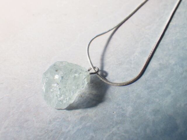 透明感のある美しいアクアマリン原石をそのまま一粒トップにして