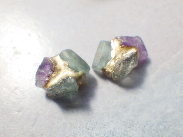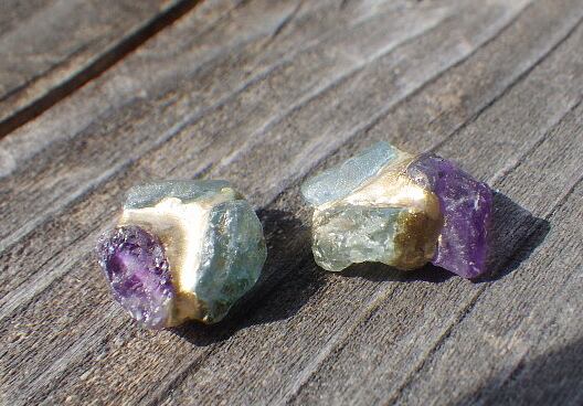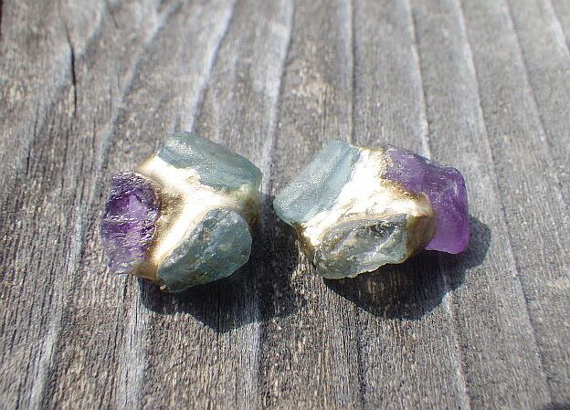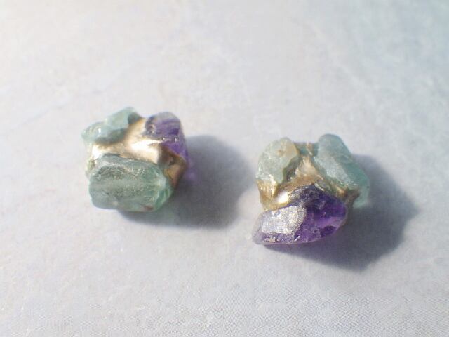 原石の金継ぎイヤリング/ピアス☆アメジスト&アクアマリン&アパタイト