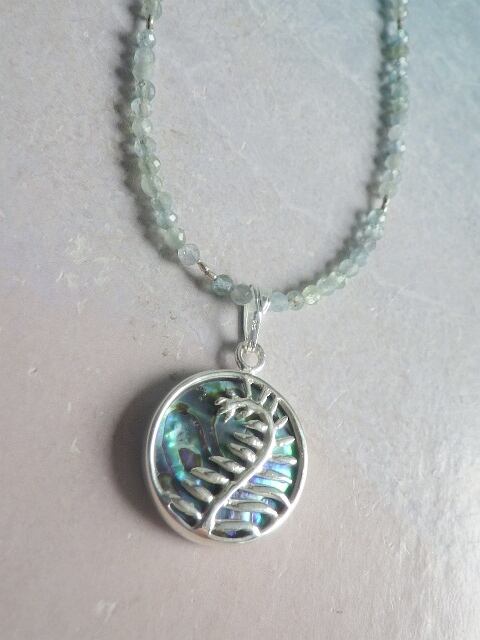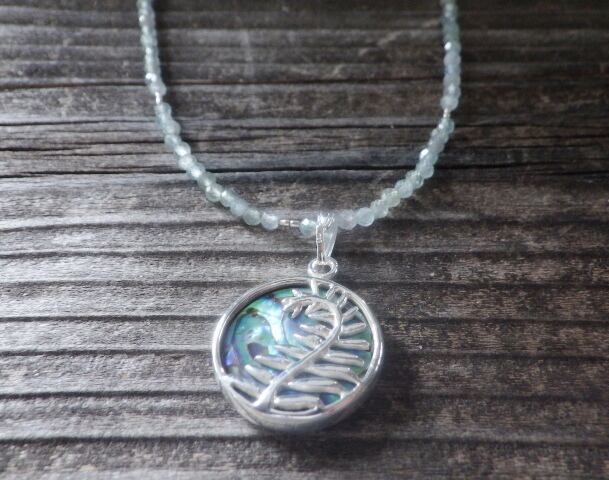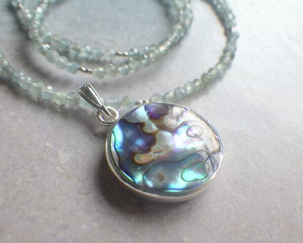 パウアシェルとアパタイトが大変美しく素敵なハイクオリティなシルバー925のハワイアンなネックレスです