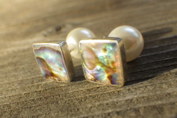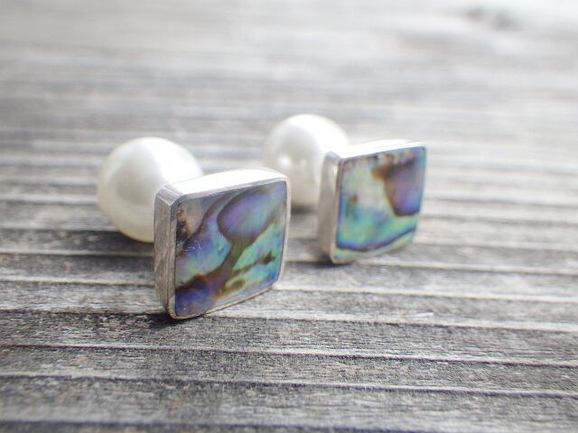 パウアシェルのシルバー925スタッドピアス&樹脂パールバックキャッチは如何でしょう