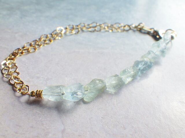 *14kgf* Raw Aquamarine Bracelet アクアマリン ハーフ&ハーフ☆ゴールドチェーンブレスレット