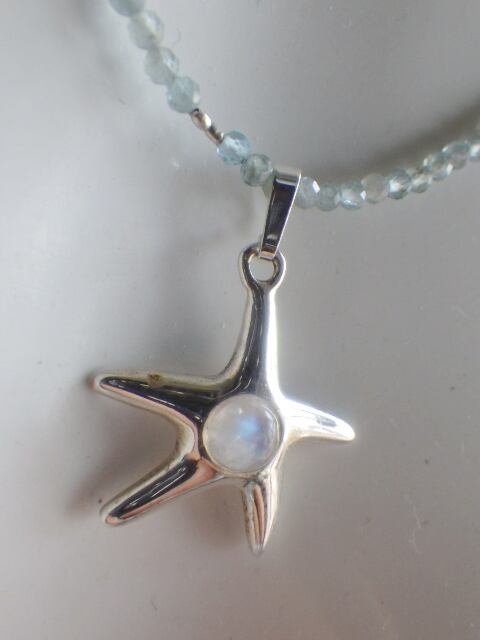 シルバー925のヒトデの真ん中にセットされたムーンストーンはブルーに輝く独特のシラーがとってもミステリアスでビューティフルです