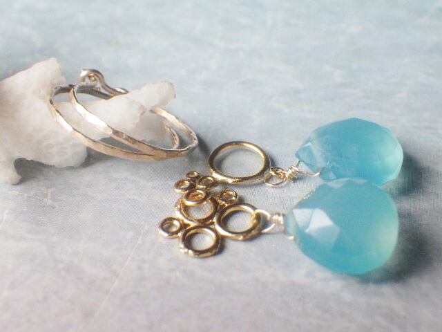 *14kgf* Ocean Bubbles & Drop カルセドニー☆ゴールドフープ☆槌目