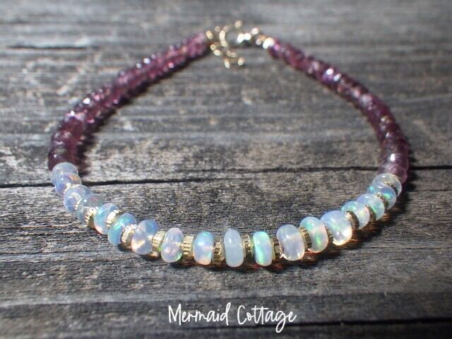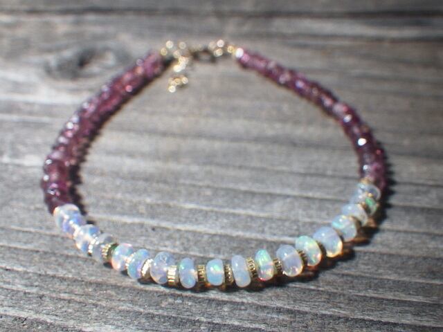 美しい夕日色のルベライトと幸せを呼ぶといわれる愛の石、オパールが輝く愛に満ちた♡ブレスレットです