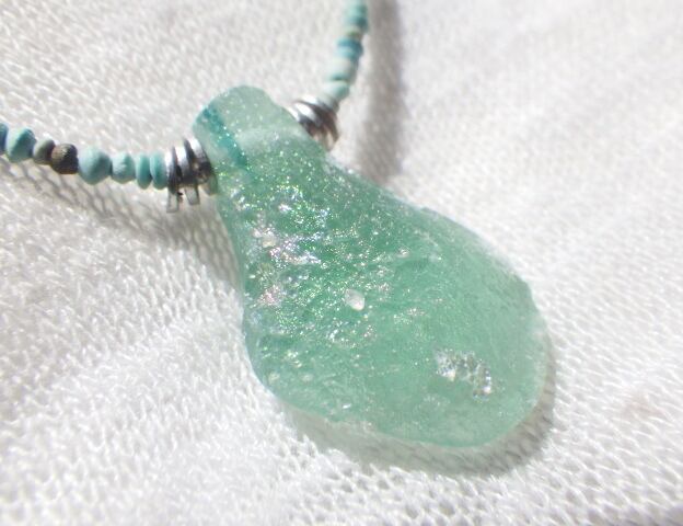 *sv925* Ocean Romanglass Necklace ローマングラスと極少ターコイズのネックレス