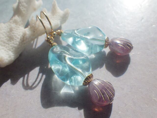 とっても美しいチェコグラスのピアスです