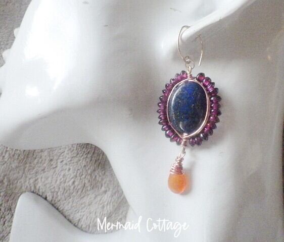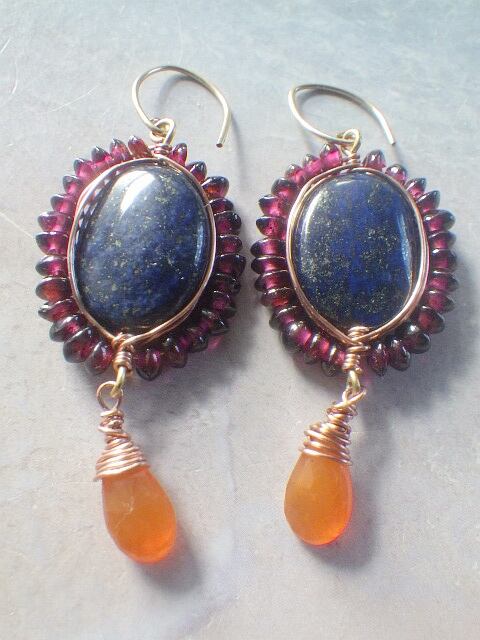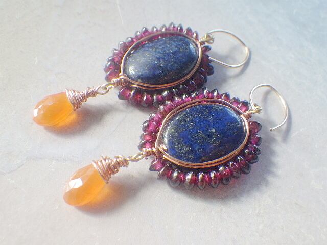 ラピスの濃く深いブルーにグルッと囲んだガーネットの朱赤。