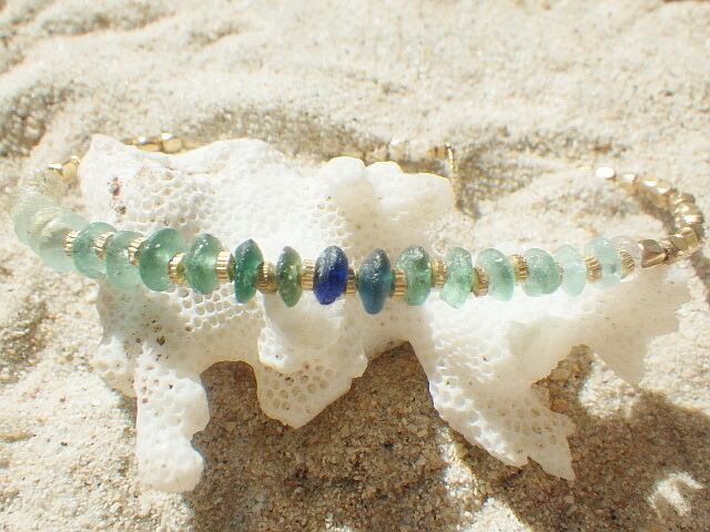 海を思わせるローマングラスのビーチブレスレットは如何でしょう