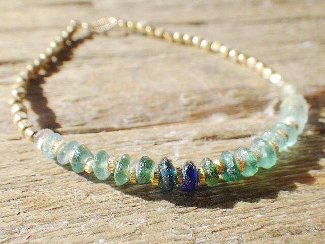 ローマングラス ローマンガラス ローマングラスジュエリー シーグラス 古代ローマングラス ローマングラスブレスレット 古代スタイル ハワイアンジュエリー 大人のビーチジュエリー 海 ハイクオリティ ハワイアンスタイル 爽やか ハンドメイド プレゼント ギフト デザイン 夏ジュエリー 涼し気