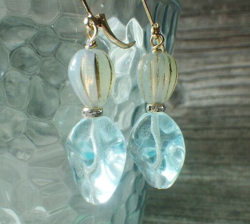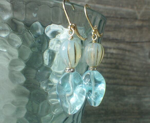 とっても美しいチェコガラスの香水ボトルをイメージしたピアスです