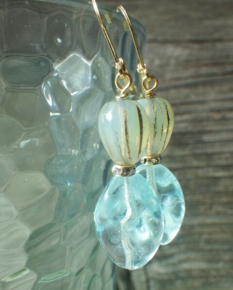 ☆海のチェコグラスビーズ 約20x13mm