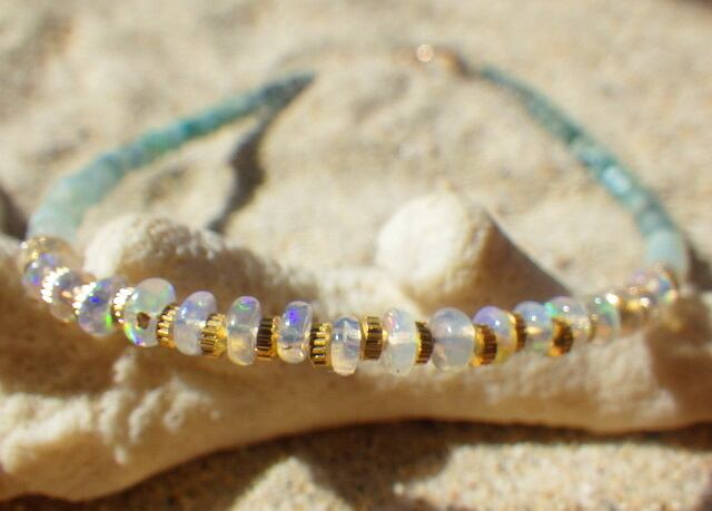 腕に虹のようなプレシャスオパールの輝きを!