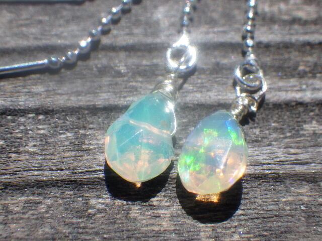 スターリングシルバーのチェーンのピアスから極上のドロップ型ファセットカットのプレシャスオパールが輝きます