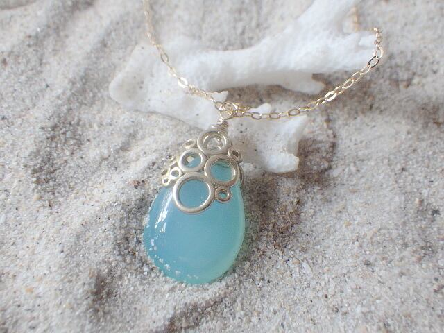 ☆お待たせ致しました。とっても綺麗な石を入手出来たのでMermaid Cottage の定番、海の泡カルセドニードロップのネックレス再販の運びとなりました。 熱い再販のご要望を下さったお客様、お待ち下さってありがとうございました!☆