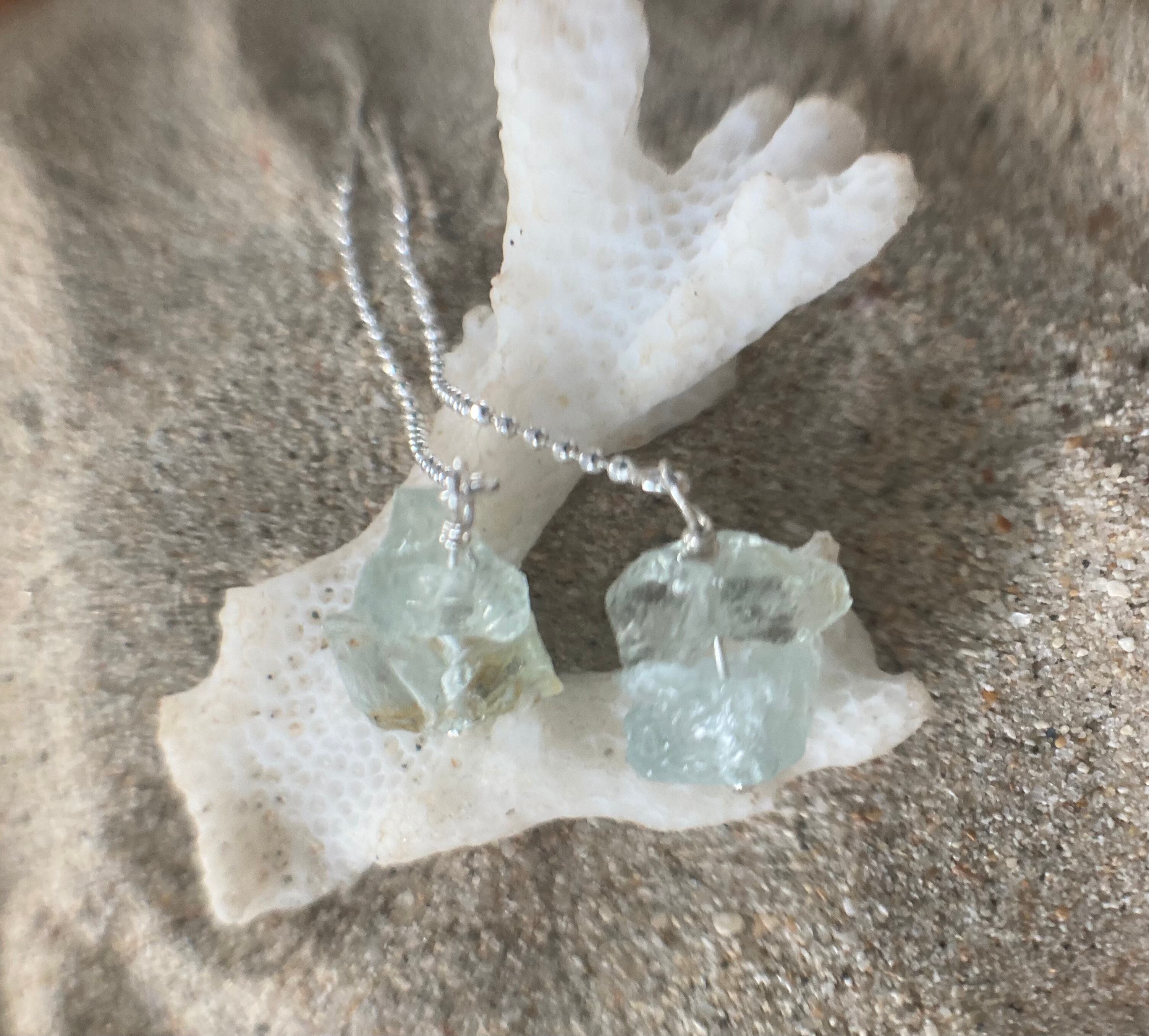 原石をそのまま切り取ったような薄い水色の欠片・・透明感のあるとっても美しいアクアマリンを二粒づつ使用しております