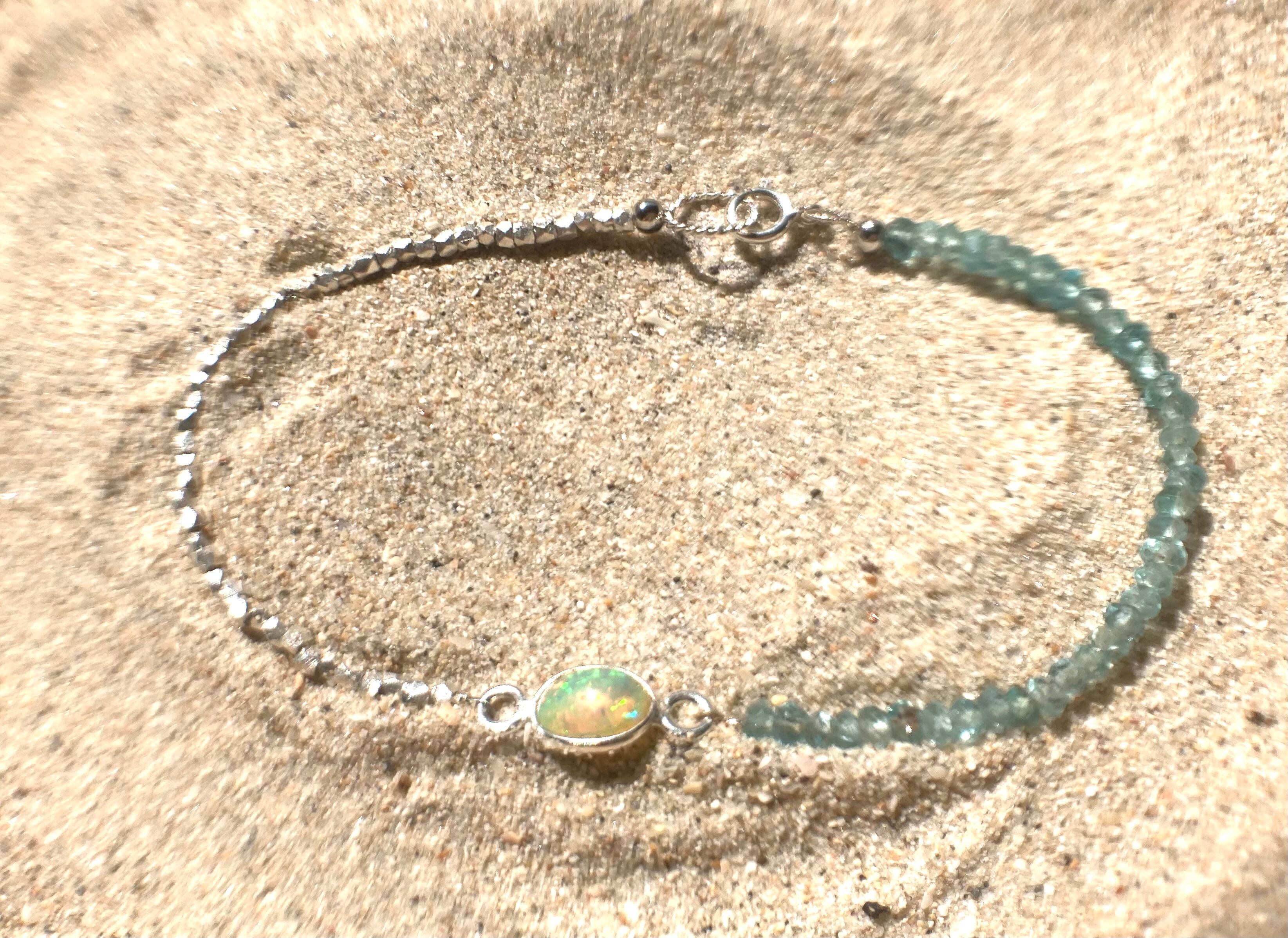【10月誕生石】Simply Opal Silver Bracelet☆【銀枠】オパール&アパタイト