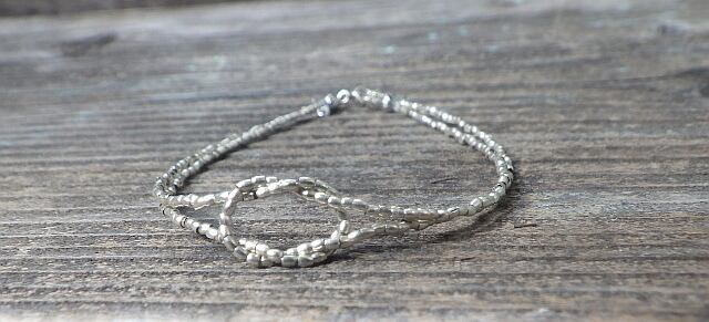 ユニークな結び目をアクセントにした極小のカレンシルバー2連の華奢ブレスレットです