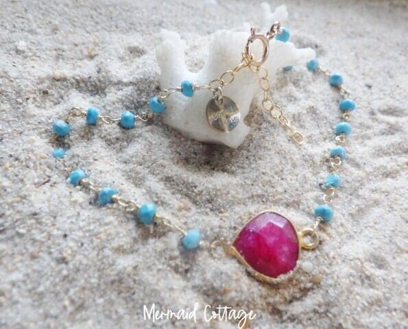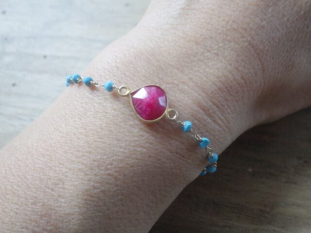 ルビーとターコイズのコントラストが美しい華奢ブレスレットです