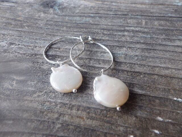 *sv925*淡水パールのシルバーフープ☆槌目ハンマー打ち