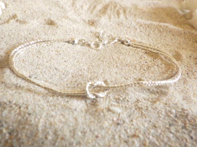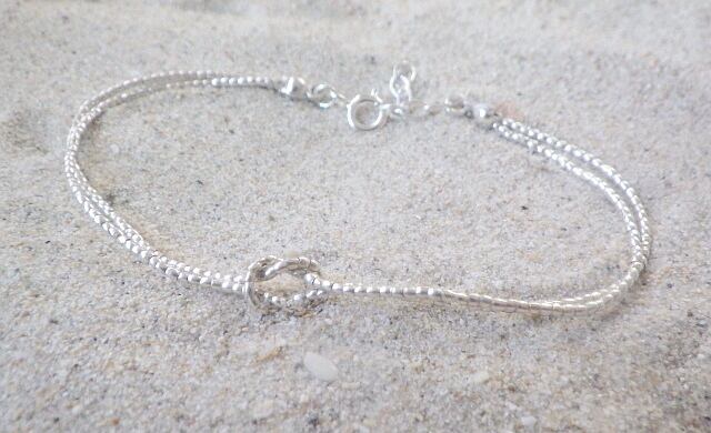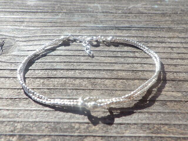 ユニークな結び目をアクセントにした極小のカレンシルバー2連の華奢ブレスレットです