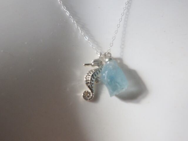 *sv925*Lucky Sea Horse & Aquamarine アクアマリンラフロックとタツノオトシゴネックレス