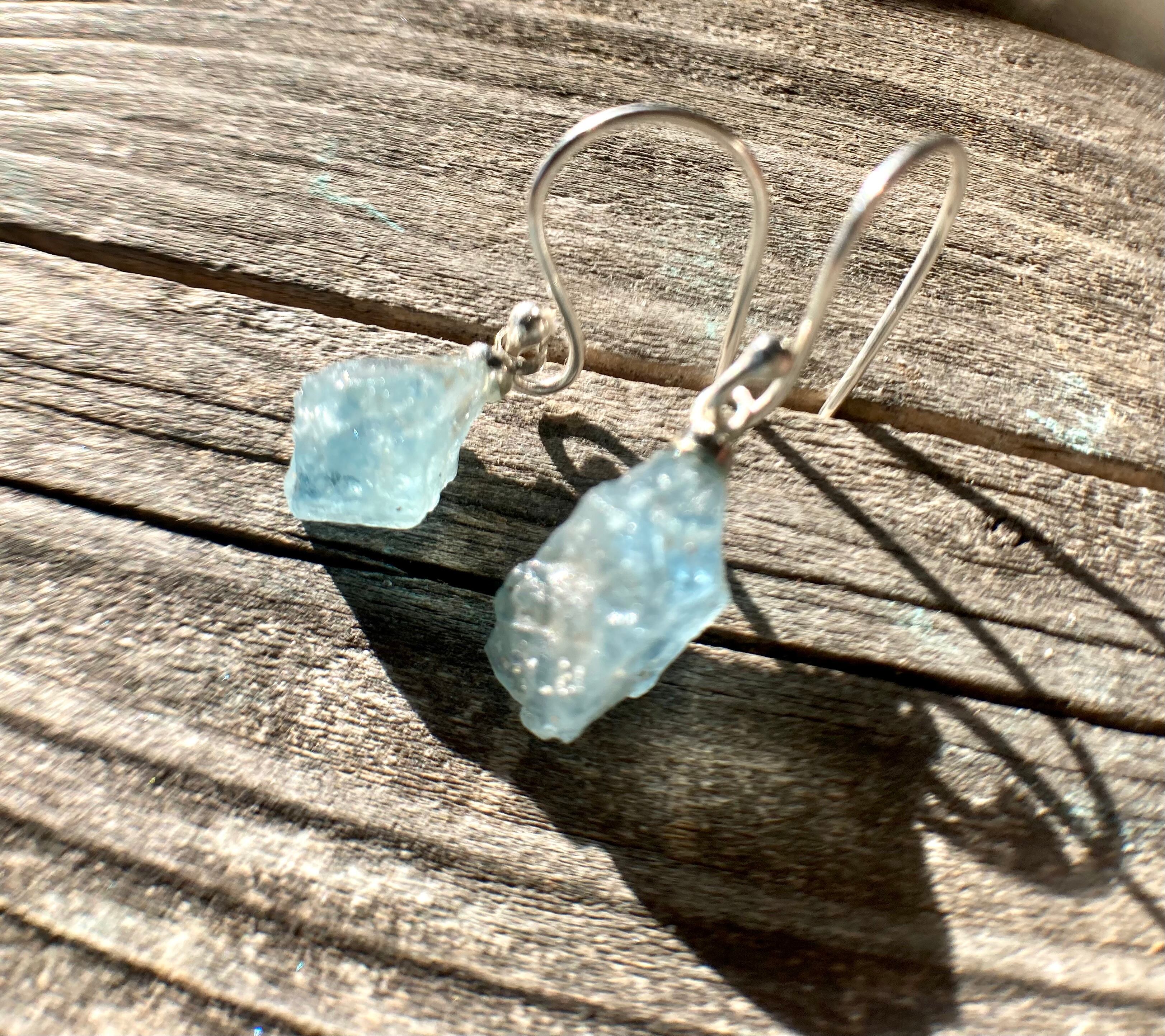 海をすくったようなアクアマリンの原石がとても美しいピアスです