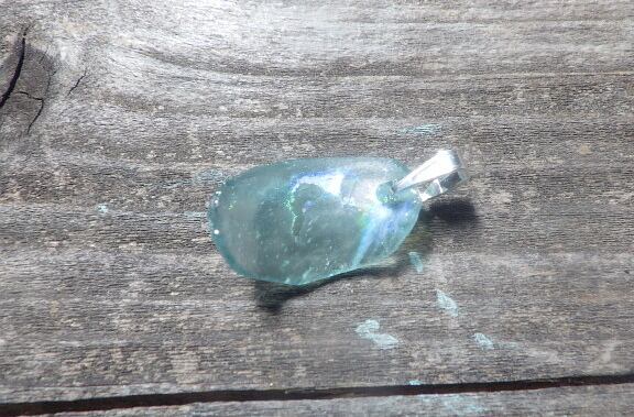 海のようなアクアシーブルーに銀化した表面の虹色がとっても味があるので