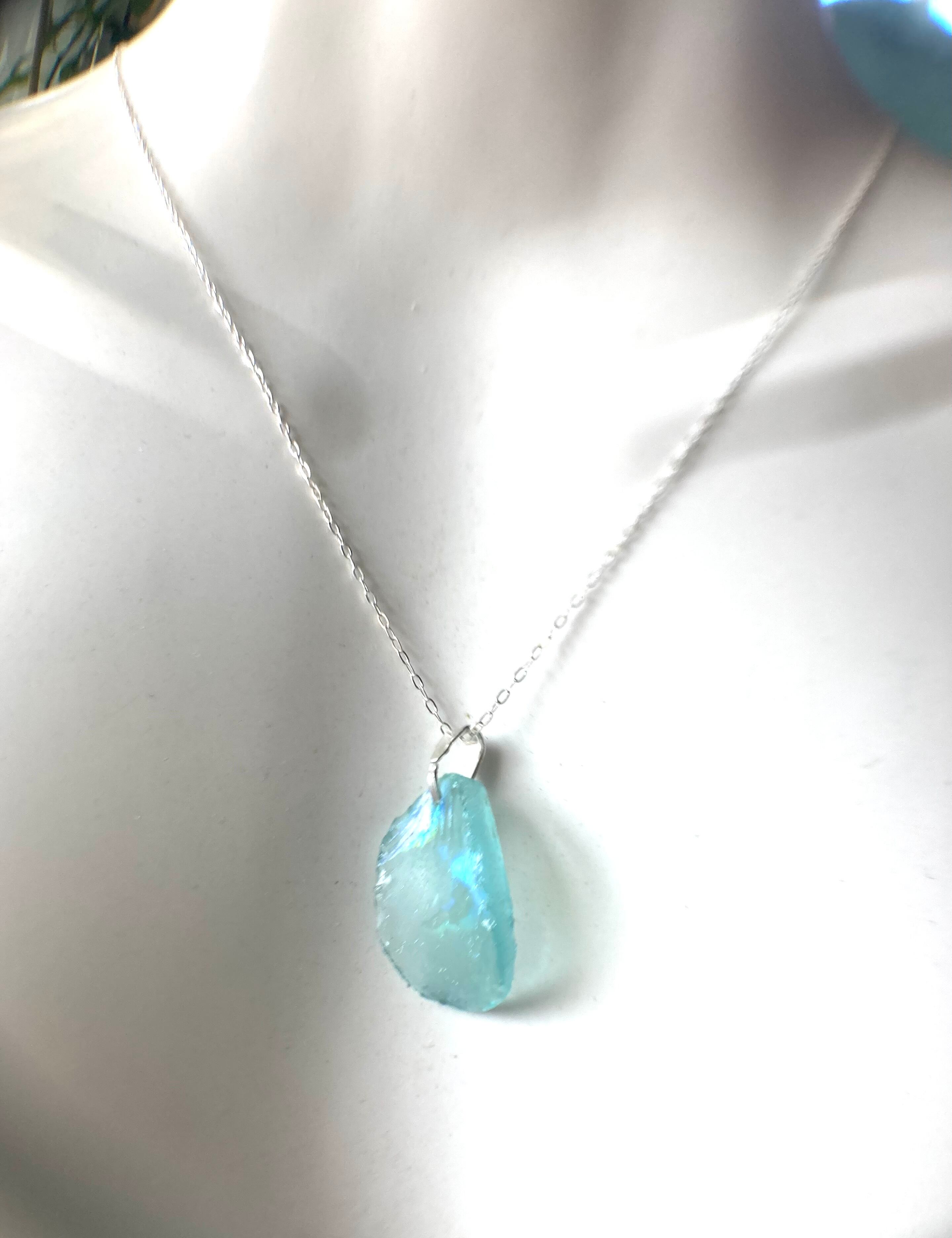 *sv925* Roman Seaside 人魚の鱗☆ローマングラスのひと粒ネックレス