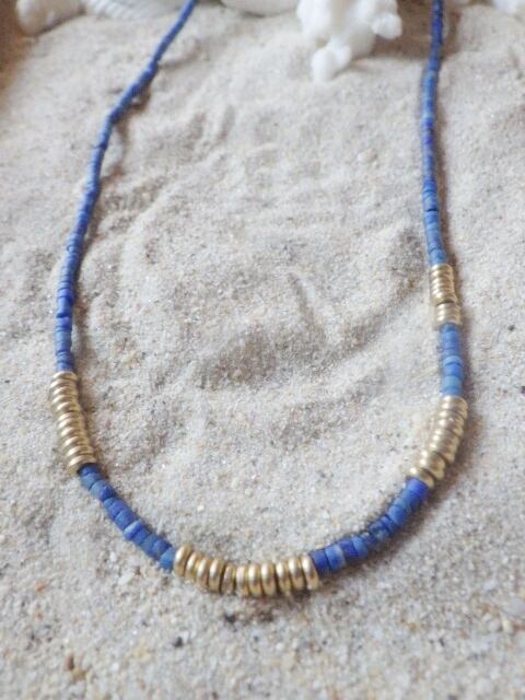 *14Kgf* 古代スタイル☆ラピスラズリと真鍮のエキゾチックネックレス lapis lazuli heishi necklace