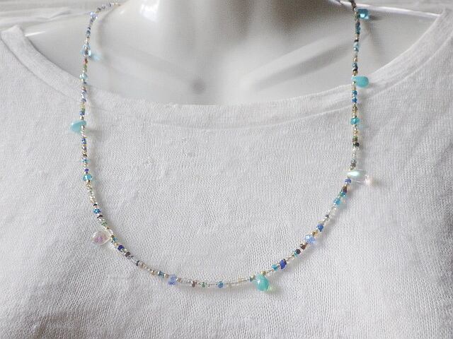 ビーチカラーのヴィンテージシードグラスビーズにチェコガラスをあわせました