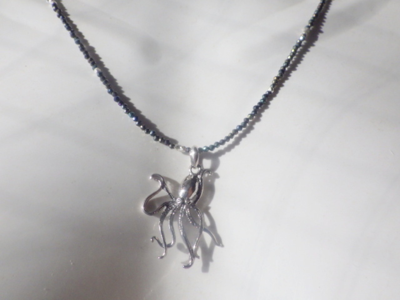インパクトのあるタコ(オクトパス)をアクセントにして男前なブラックスピネルのネックレスにしました