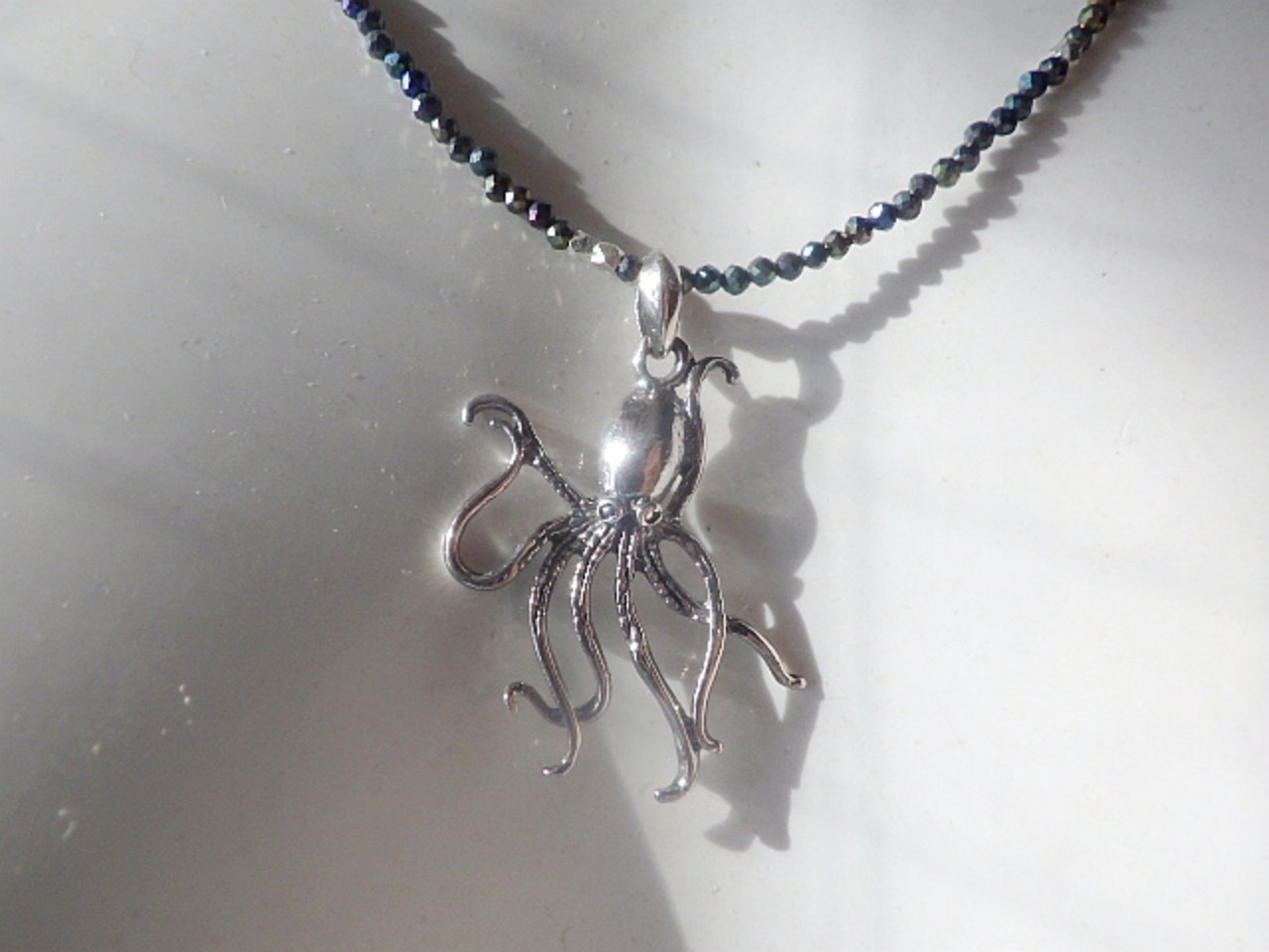 タコ好きにはたまらないシルバー925製オクトパスの総天然石ネックレス